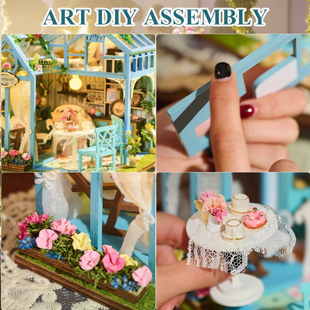 Easy to assemble: This miniature dollhouse greenhouse DIY miniature house dollhouse is made of high-quality wood, robust and durable. Graphic description, easy to understand. To allow a precise combination and connection, the building blocks can be easily removed from the frame.