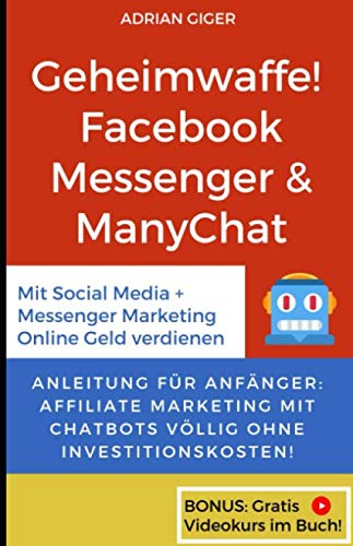 Geheimwaffe! Facebook Messenger & ManyChatMit Social Media + Messenger Marketing Online Geld verdienen – Anleitung für Anfänger: Affiliate Marketing mit Chatbots völlig ohne Investitionskosten!Ich gehe in diesem Buch speziell auf das Geld verdienen im Internet mit Affiliate Marketing ein, weil es für mich die natürlichste und einfachste Form eines Geschäftsmodells ist. Dabei lege ich den Fokus klar auf Social Media Marketing unter der Verwendung einer Technologie, welche uns in Zukunft noch stark beeinflussen wird. Der Verwendungszweck von Facebook Messenger & Chatbots im allgemeinen und deren Potenzial sind enorm.Das Ziel des Buches ist es, dir den leichten Einstieg ins Affiliate Marketing zu erklären und dir dabei ein Strategie näher zu bringen, welche dir keine Kosten verursacht. Ich werde auch den Vergleich zu den Bereichen ziehen, welche sich im Online Marketing nicht geändert haben. Zudem werde ich dir den weiteren Weg nach dieser Strategie aufzeigen, solltest du dich entscheiden weiter zu machen und dein Online Business weiter auszubauen.Das Buch ist in mehrere Kapitel aufgeteilt. Es gibt einen Grundlagen Teil, denn mir ist es wichtig die Fakten und Daten zuerst auf den Tisch zu bringen. Klar möchte du am liebsten gleich loslegen und umsetzen. Aber man fängt das Haus ja auch nicht am Dach an zu bauen. Der zweite Teil des Buches dreht sich dann um den Praxis. Hier geht es dann darum, das ganz umzusetzen und zwar Schritt für Schritt. Zusätzlich habe ich noch ein drittes Kapitel mit Tipps & Tricks eingebaut um das Buch abzurunden und um dir den absoluten Mehrwert zu liefern. Um dir die Umsetzung der von mir erklärten Inhalte zu erleichtern, habe ich zahlreiche kostenlose Boni, sowie einen kostenlosen Videokurs exklusiv für meine Leser erstellt. Zudem ist noch eine weitere Überraschung inklusive, welche dich direkt Geld verdienen lässt.