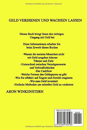 Geld verdienen und wachsen lassen Dieses Buch ich ein MUSS für Sie wenn Sie endlich verstehen wollen wie Sie mit Geld umgehen sollten Dieses Buch ist ein absolutes SCHNÄPPCHEN, den für NUR 7,99€ bekommen Sie in einem normalen Buchladen GARANTIERT kein Buch über Geld mit all den Informationen was Sie hier erhalten Es hilft ihnen, Antworten auf viele ihrer Fragen im Bereich Geld zu erlangen. Ich möchte Sie mit diesem Ratgeber an die Hand nehmen und Sie von der Materie Geld inspirieren. Dieses Buch sozusagen ist Ihre Geld-Bibel welches ihnen immer zur Seite stehen wird falls Sie was vergessen haben sollten.Wenn Sie endlich das Geld Prinzip verstehen möchten dann ist dieses Buch für Sie unabdingbar Diese Informationen erhalten Sie beim Erwerb dieses BuchesWarum die meisten Menschen nicht mit Geld umgehen könnenTräume und ZieleUnterschied zwischen Vermögenswerte und Verbindlichkeiten Der CashflowWelche Formen des Geldsparens es gibtWie Sie effektiv auf Ängste und Zweifel reagierenWie man Geld investiertEinfache Methoden um nebenbei Geld zu verdienen Wenn Sie ihrem „vom Lohn zu Lohn Leben“ endlich ein Ende setzen wollen und in Zukunft mehr Geld zur Verfügung haben möchten, dann zögern Sie nicht und holen Sie JETZT dieses Buch und ihr Wissen über das „Finanzielle“ erweitert sich um ein vielfaches