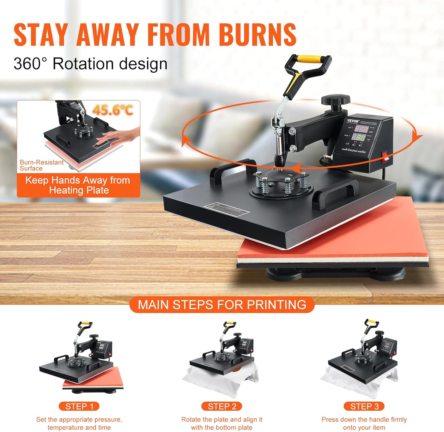 2-in-1 heat press Digital control Teflon insulation coating 360° swivel Easy to use